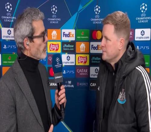 欧冠联赛阶段第8轮,纽卡客场1-1战平巴黎,纽卡主帅埃迪-豪赛后接受了CANAL+的采访。