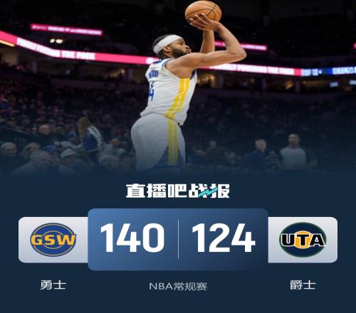 勇士8人上双力克爵士库里27分穆迪26+5基昂特乔治19+6+7